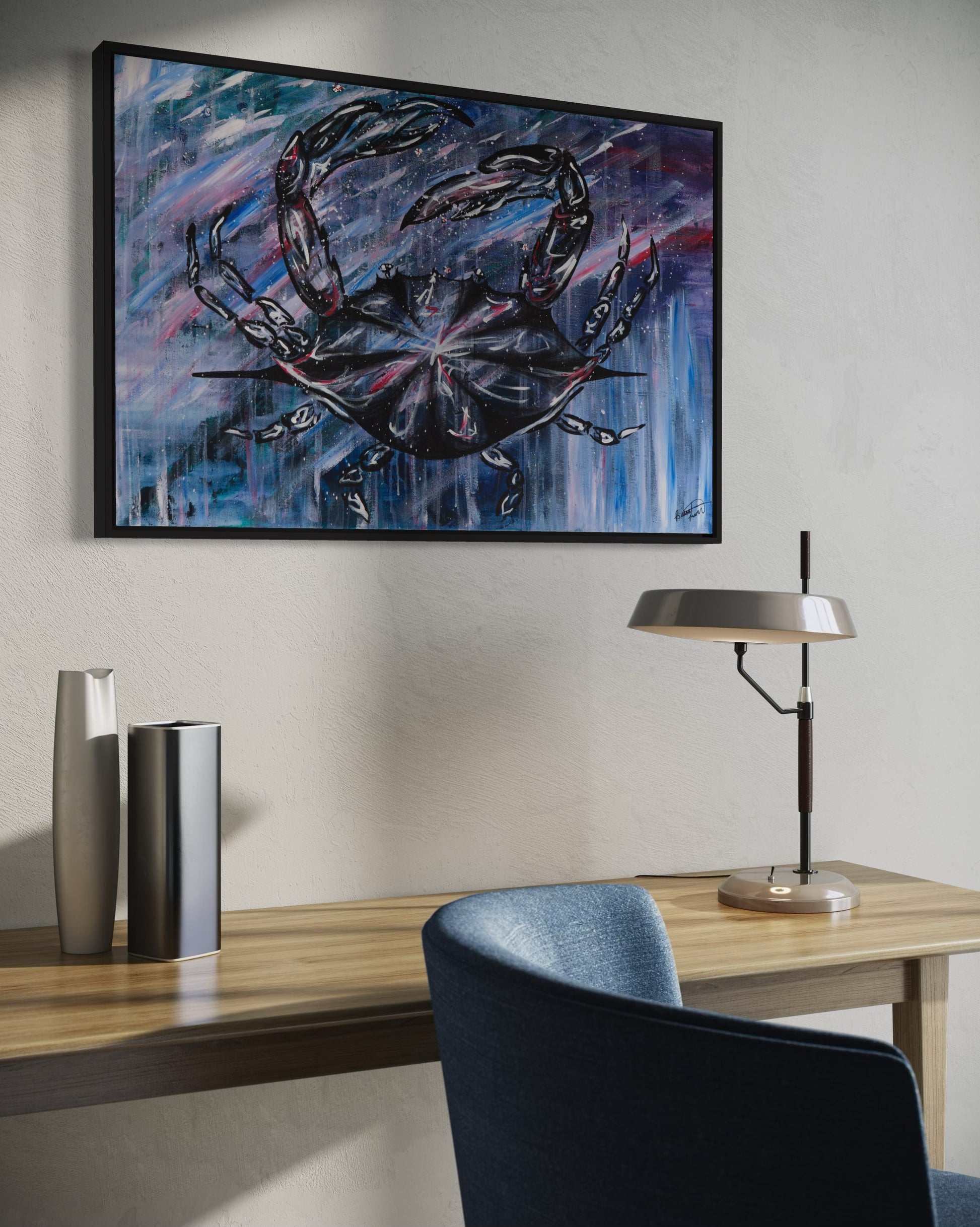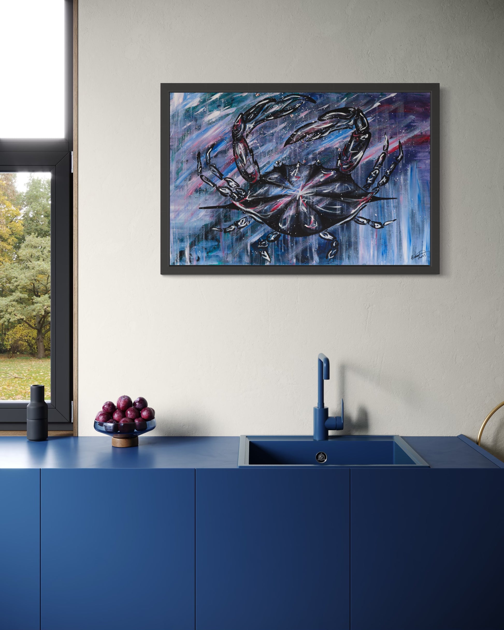 “Karkinos” arrives exactly as shown, securely stretched on its original wooden frame. No additional stretching required. Hang it immediately or frame it to suit your vision. Frames in photos are for display inspiration only and are not included.